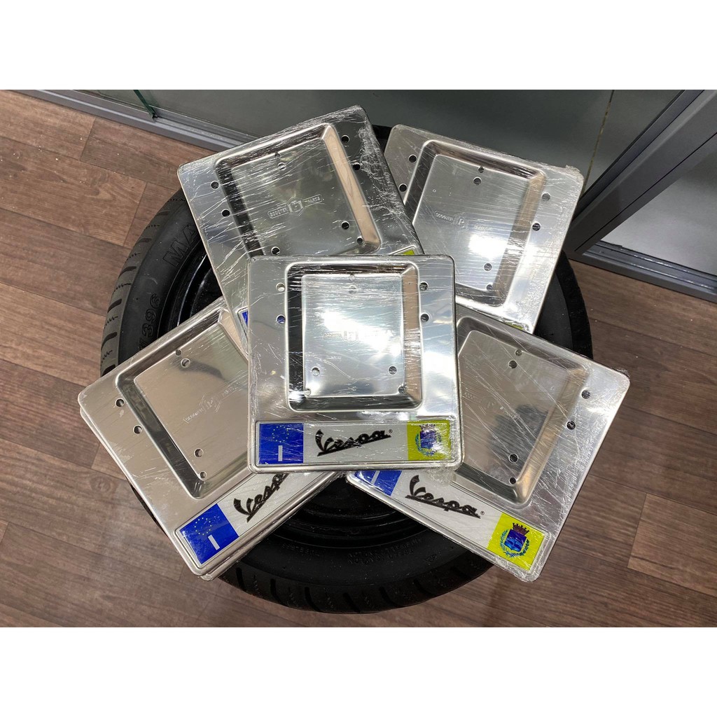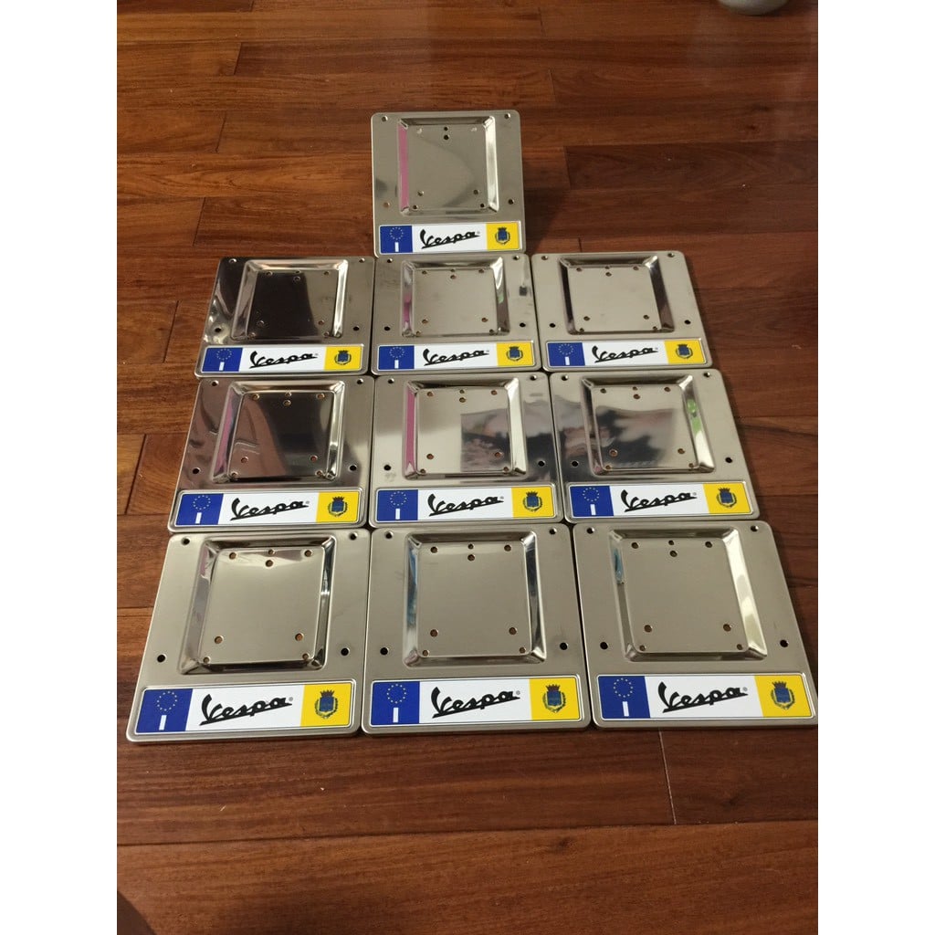 Đế biển số inox Vespa có Logo.